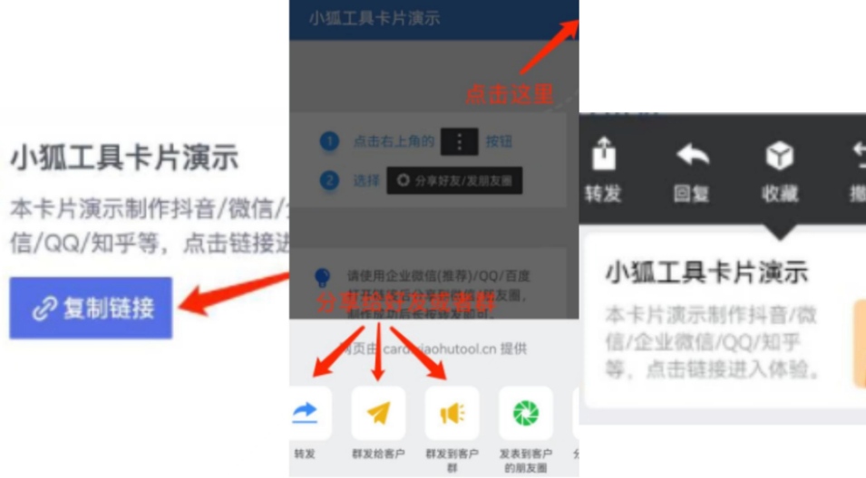 3.生成样式:复制链接到微信聊天,点击访问再转发成卡片样式,长按就能继续转发。
