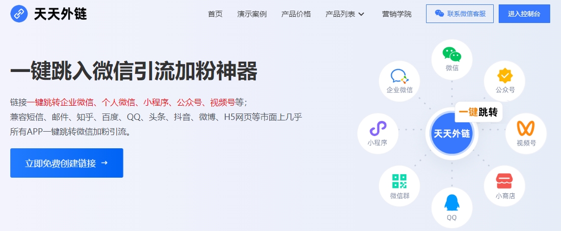 步骤一:点击上方卡片,用手机号注册登录,进入外链官网点击“立即免费创建链接”