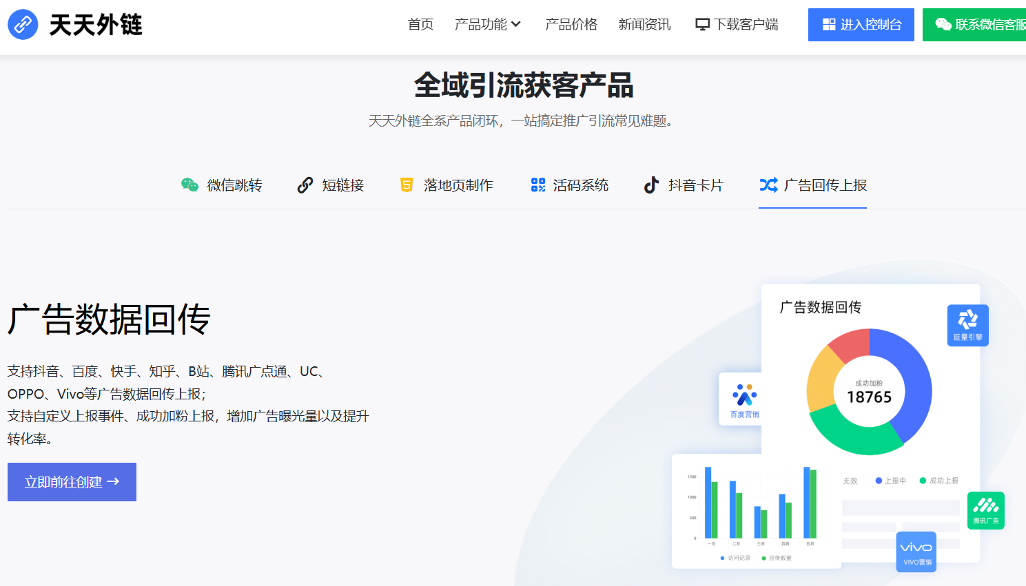 有没有一种方法,能让抖音视频上的用户‘点一下’就跳进微信,全程不报错、不封号?天天外链是一款跨平台跳转工具,其核心功能包括一键生成适配抖音审核机制的跳转链接,无需任何技术背景即可操作。同时,具备强大的防屏蔽能力,有效规避平台拦截,确保跳转链路长期稳定;还支持加粉数据回传和落地页搭建,帮助企业实时追踪转化效果,用数据驱动引流策略持续优化。
